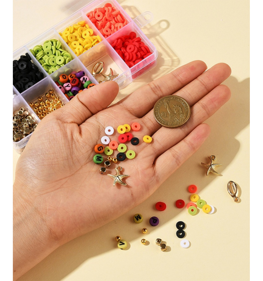 Coffret de perles heishi et acrylique pour fabriquer bracelets, colliers et chaines de lunettes.