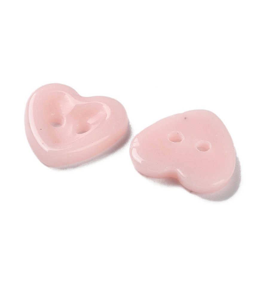 15mm - Bouton 2 trous coeur rose