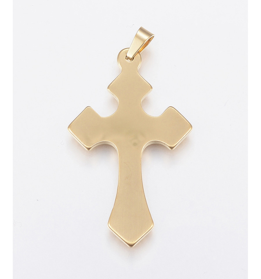 Pendentif grande croix + coeur en acier