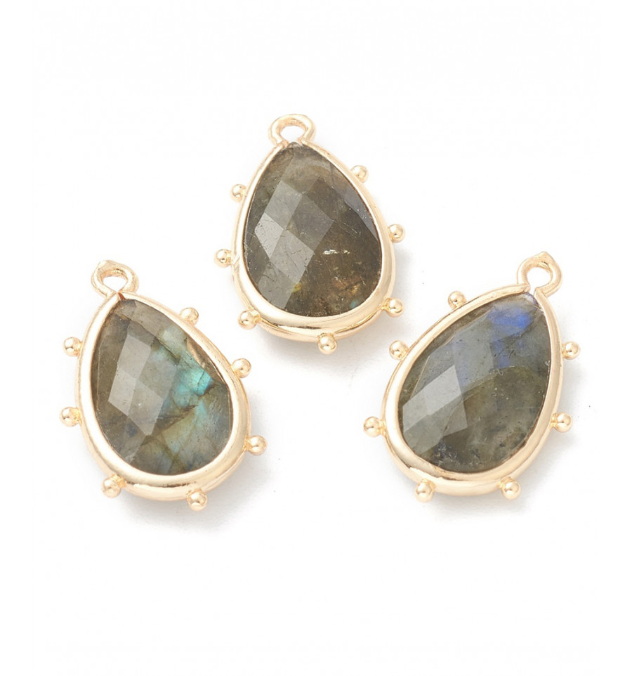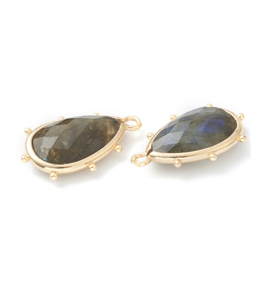 pendentif larme sertie avec minis billes en pierre labradorite