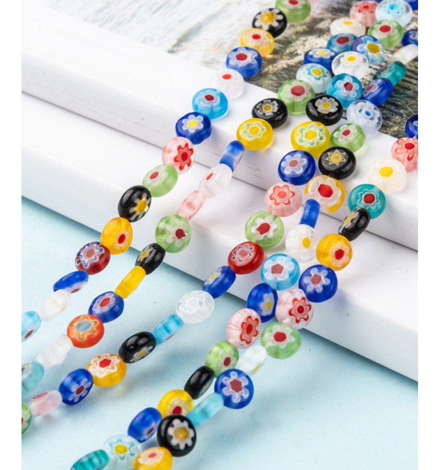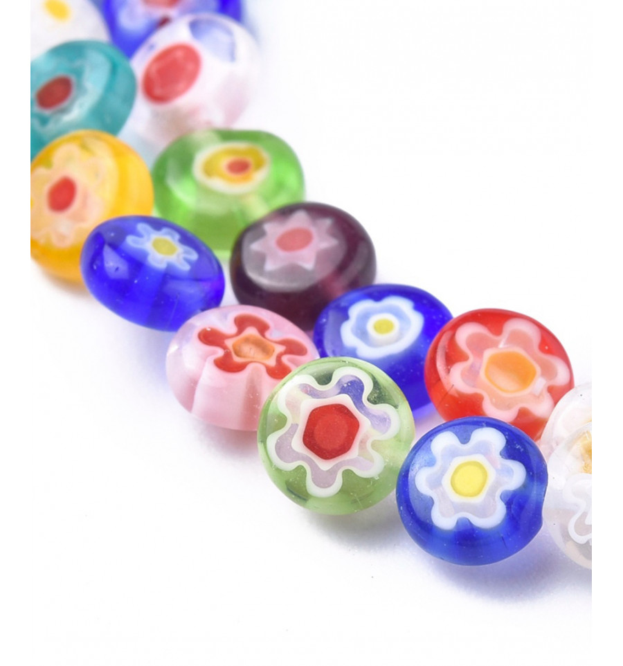 6mm - Chapelet perle de verre ronde et plate - Millefiori