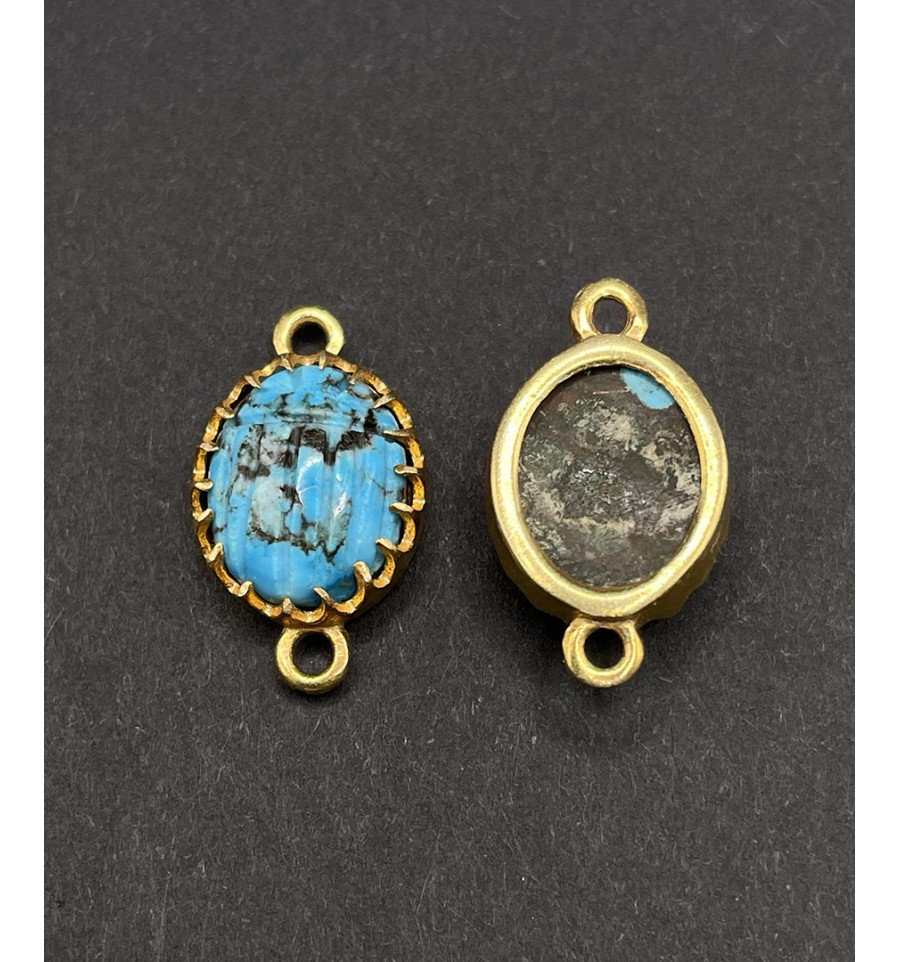 Nos connecteurs scarabées sont choisis par nos soins et façonnés et sertis à la main dans notre atelier en Inde.