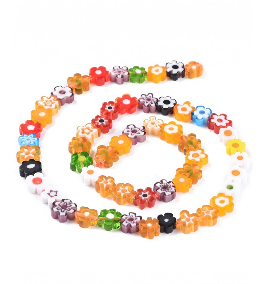 8mm - Chapelet perles fleurs en verre "Millefiori"