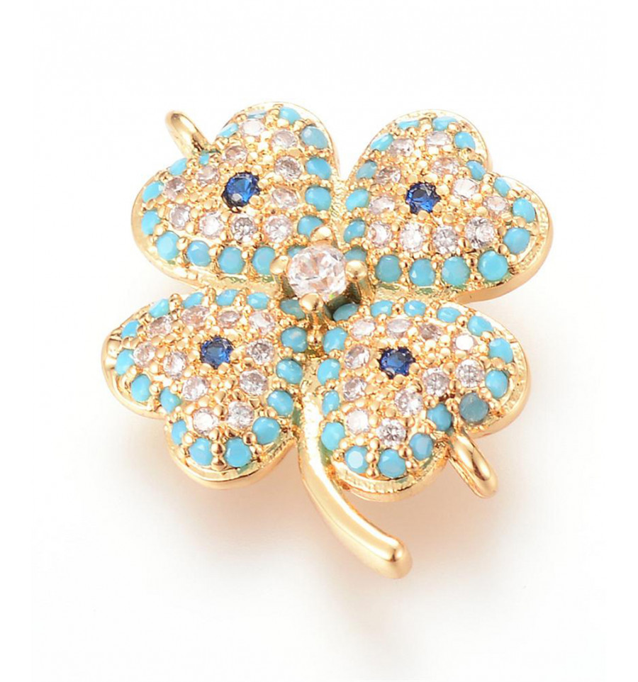 Connecteur trèfle +zircon bleu