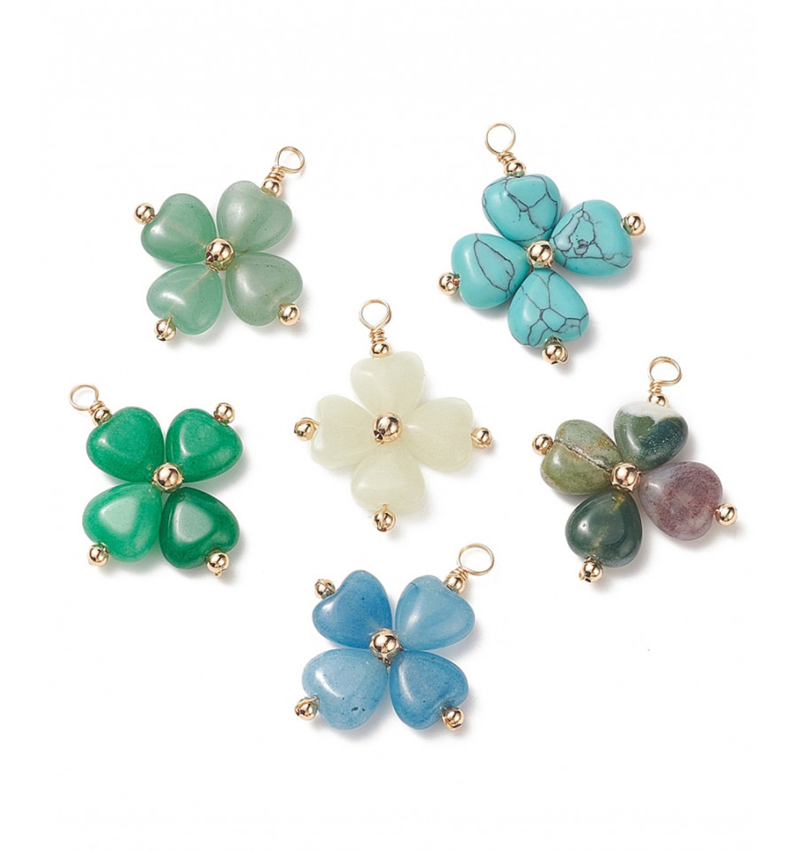 Pendentif trèfle en jade vert anis clair
