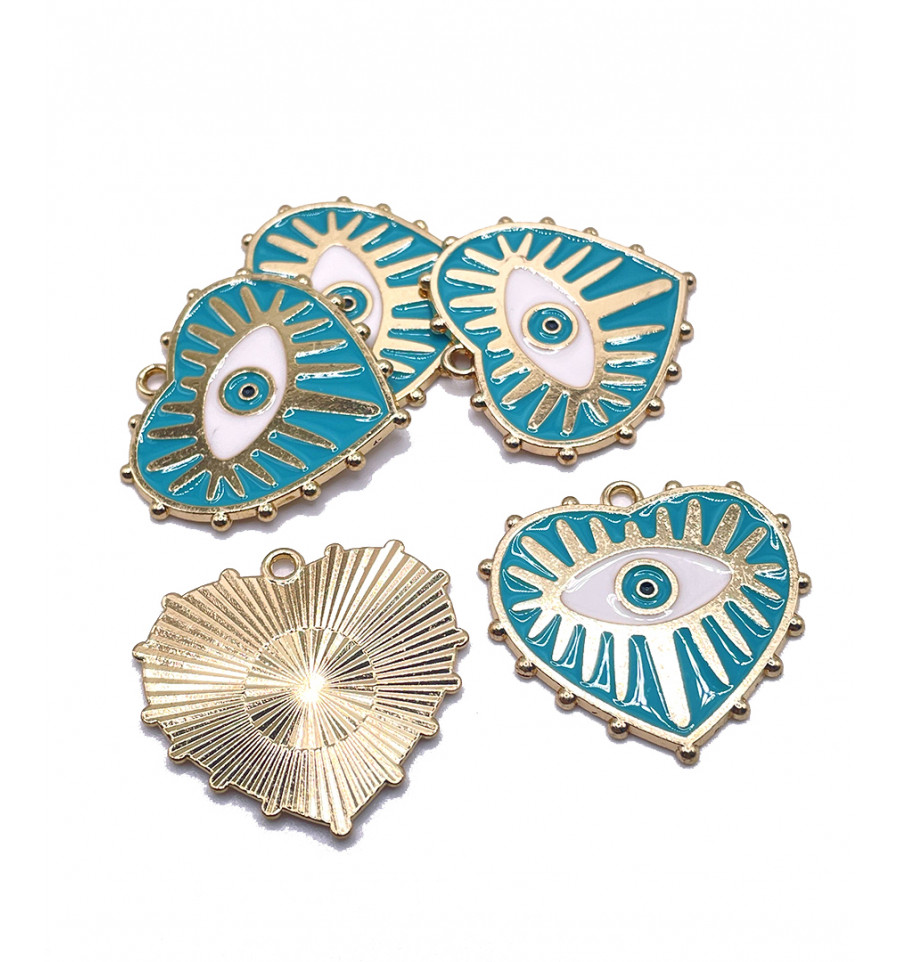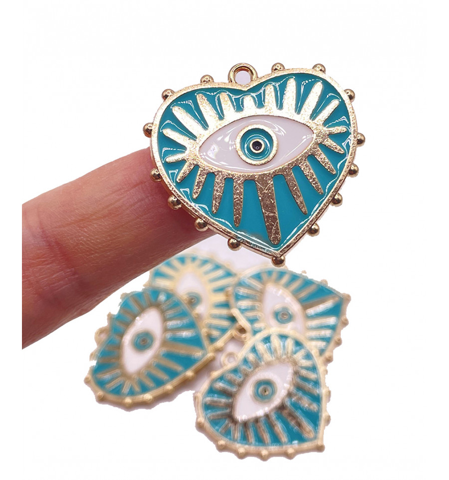 Pendentif émaillé coeur + oeil
