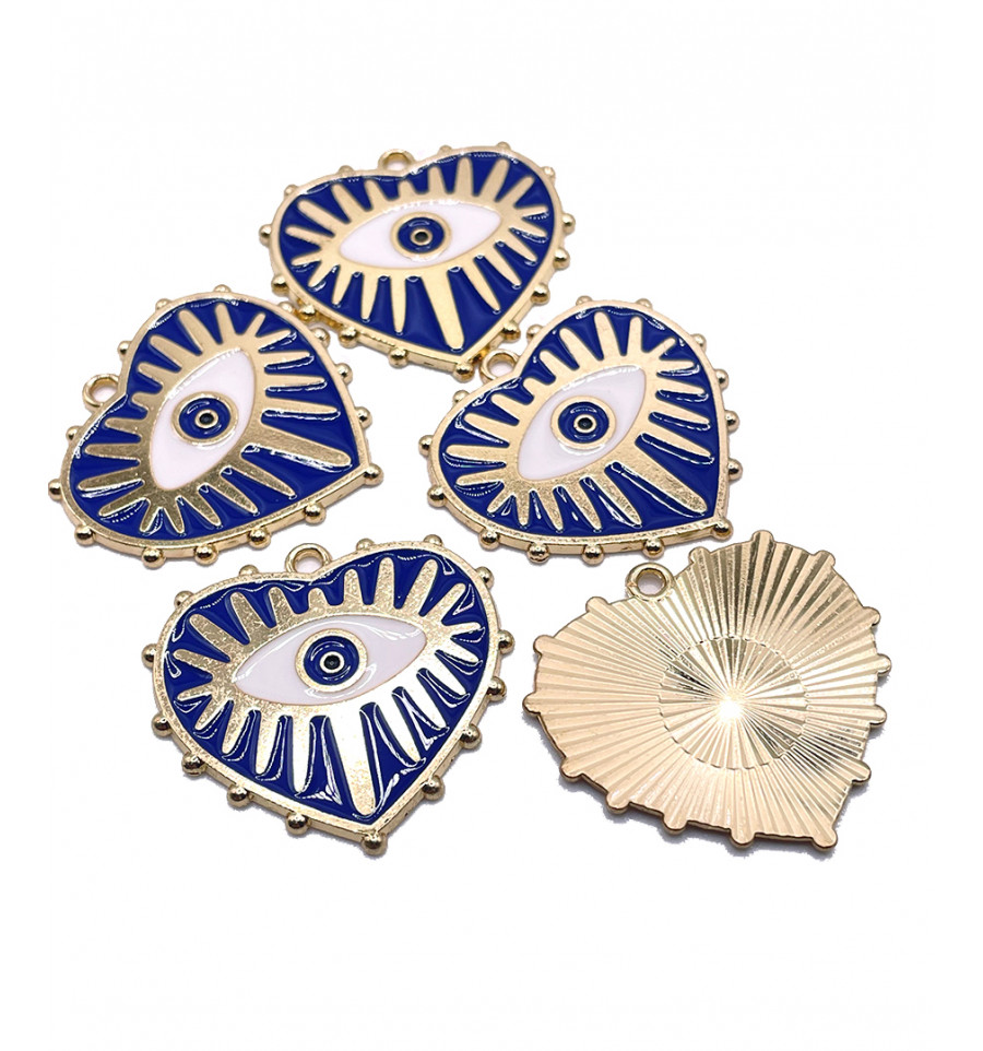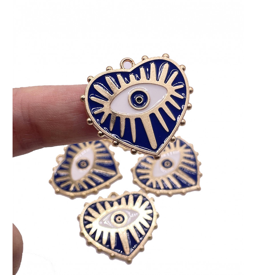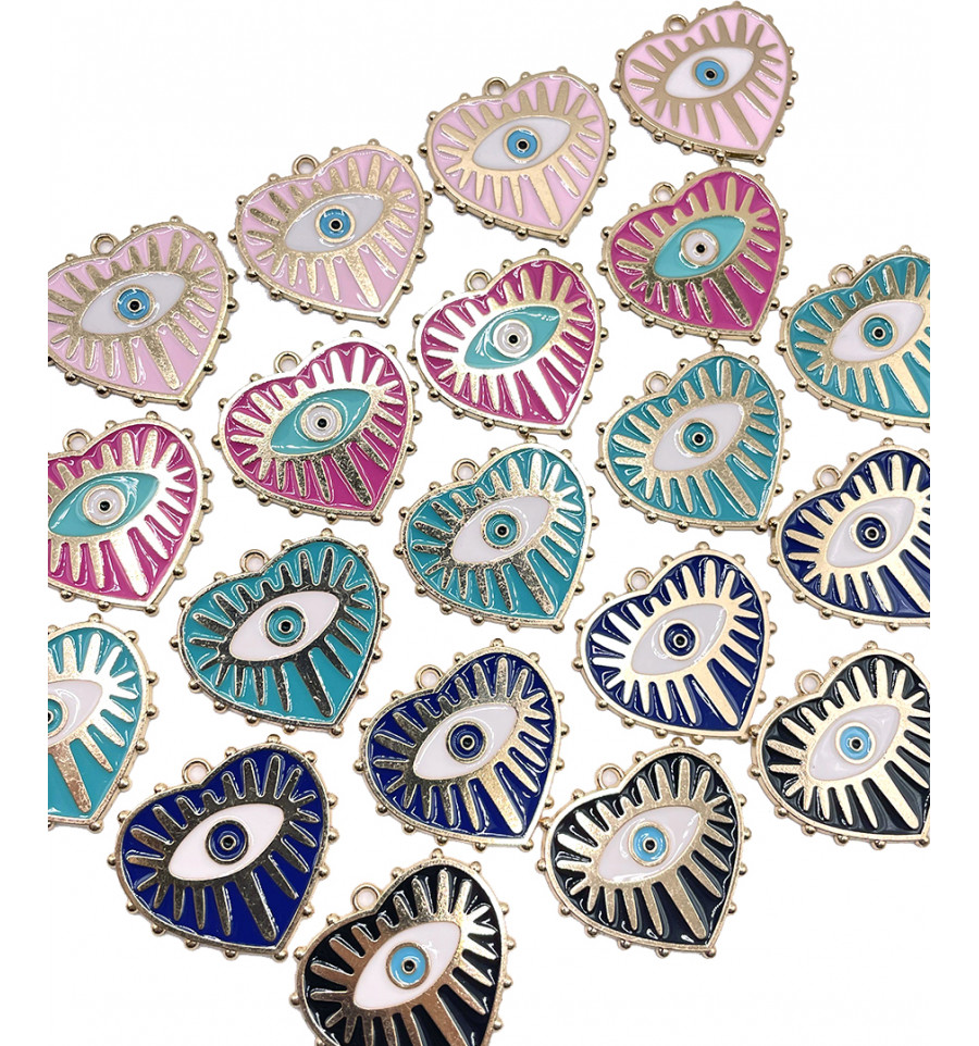 Pendentif émaillé coeur + oeil
