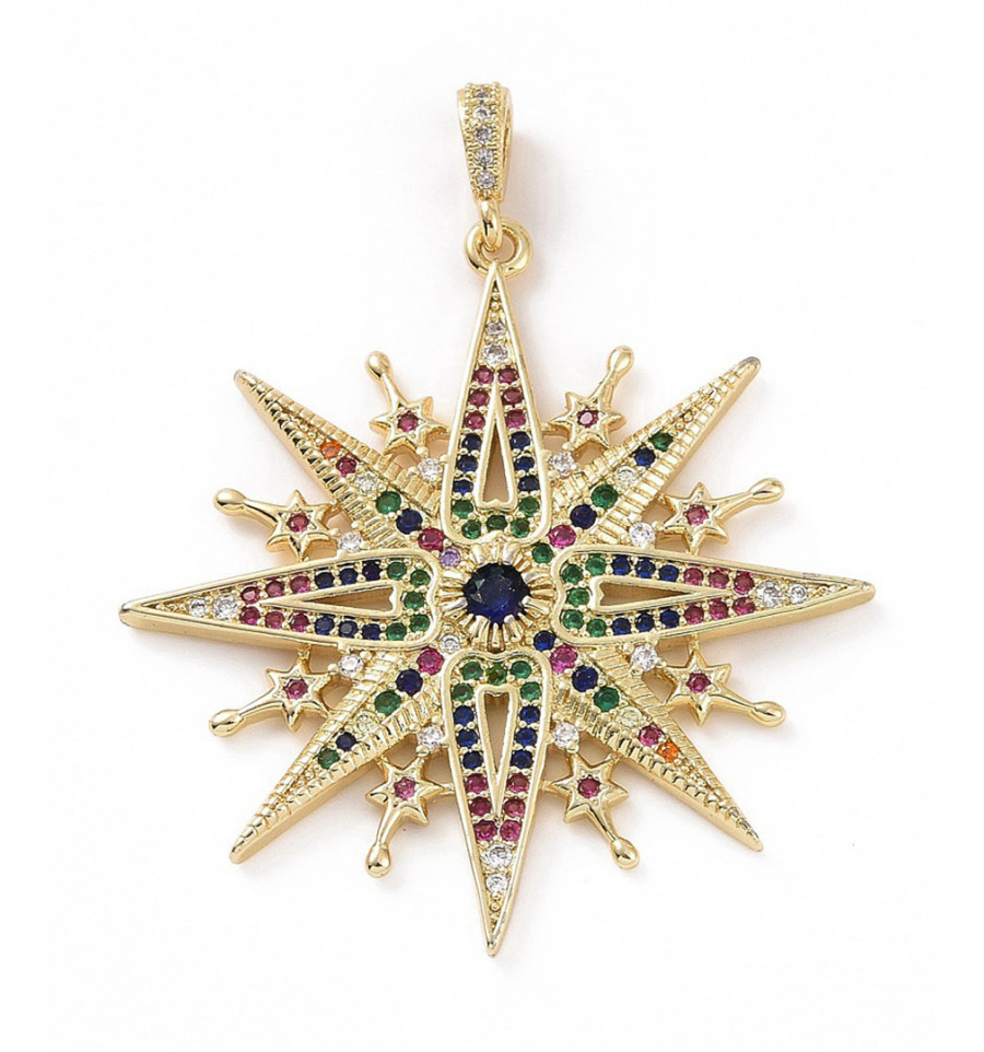 Pendentif grande étoile + zircons multicolores