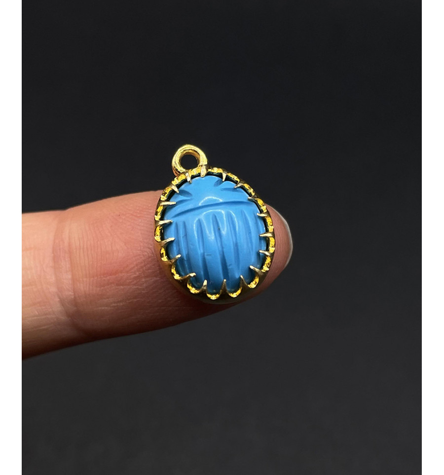 Imitation turquoise - pendentif scarabée serti en pierre