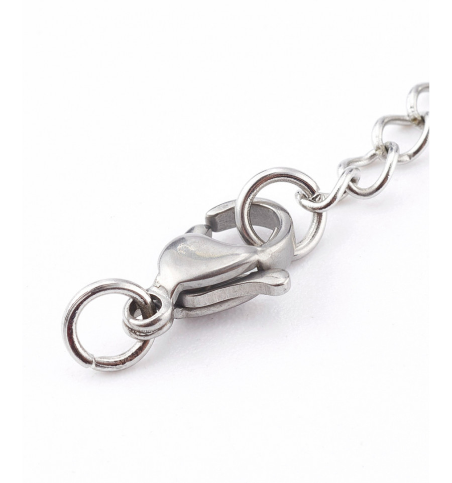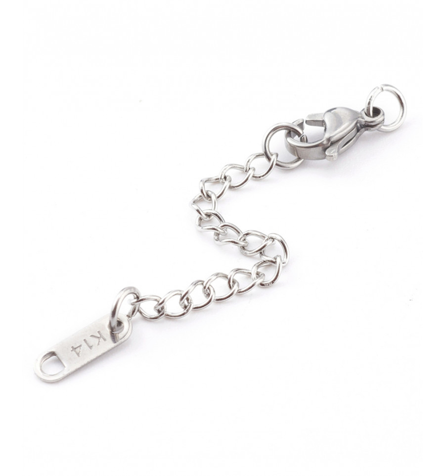 Fermoir mousqueton et sa chaine de rallonge.