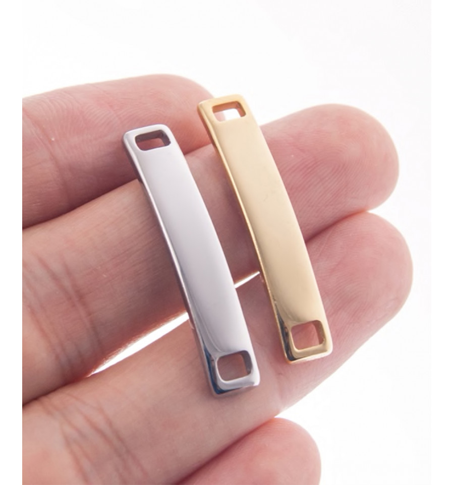 Connecteur plaque gourmette lisse dorée acier inoxydable