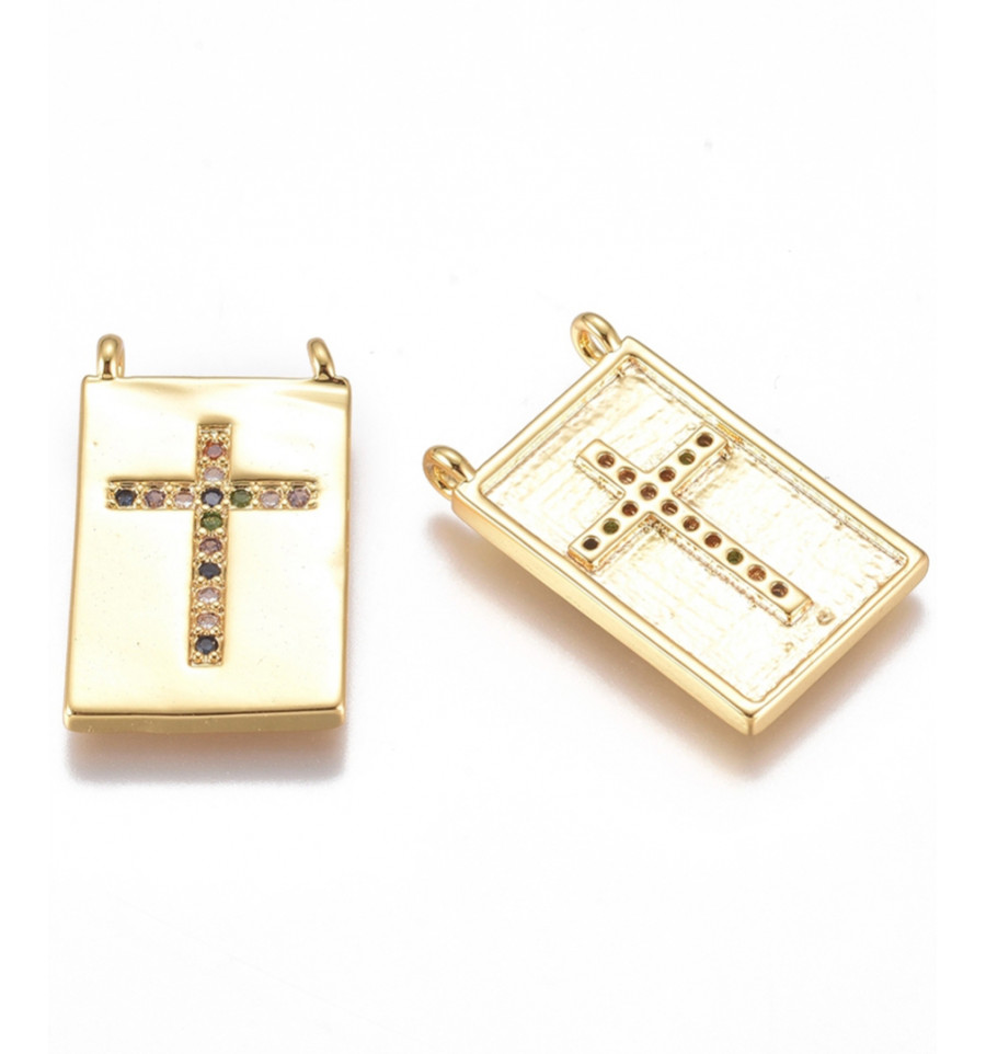 Pendentif rectangle avec croix en zircon / doré à l'or fin