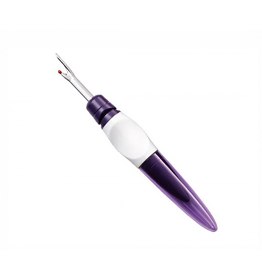 En le mettant capuchon transparent de couleur mauve à l'autre extrémité, le découseur se transforme et se rallonge pour une bonne prise en main.