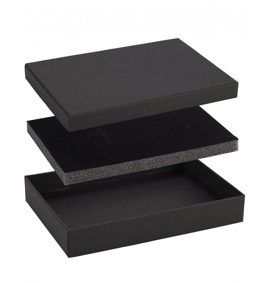 Boite à bijoux en carton épais noir avec mousse intérieur.