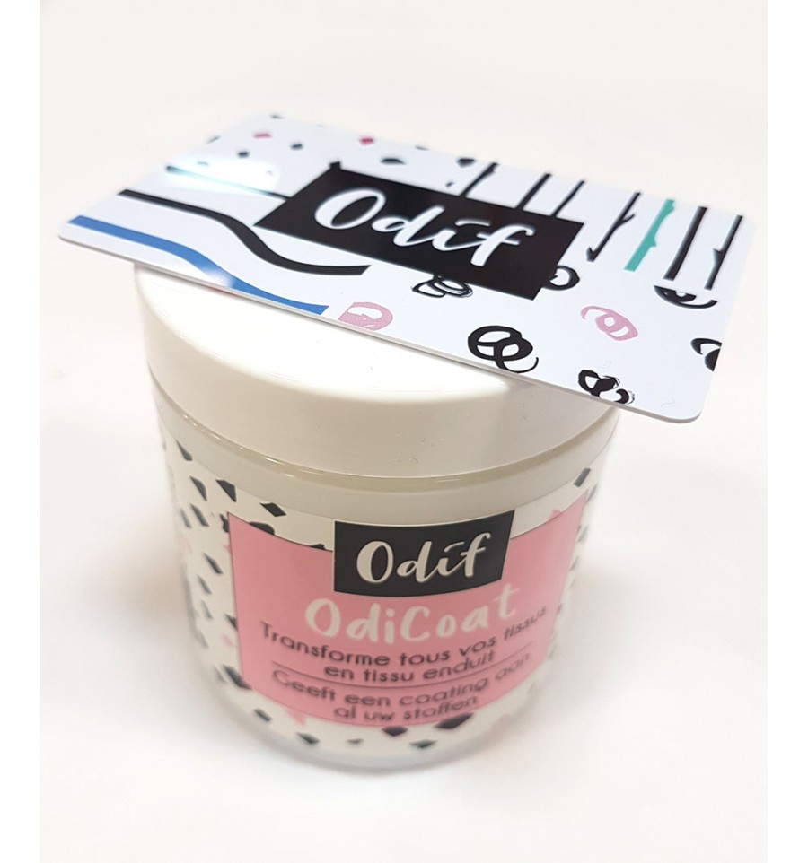 L'OdiCoat est également une colle remarquablement forte et transparente, pour coller vos tissus entre eux, boutons, rubans... Idéal aussi pour le cartonnage car ne transfère pas sur le tissu, ni le carton.