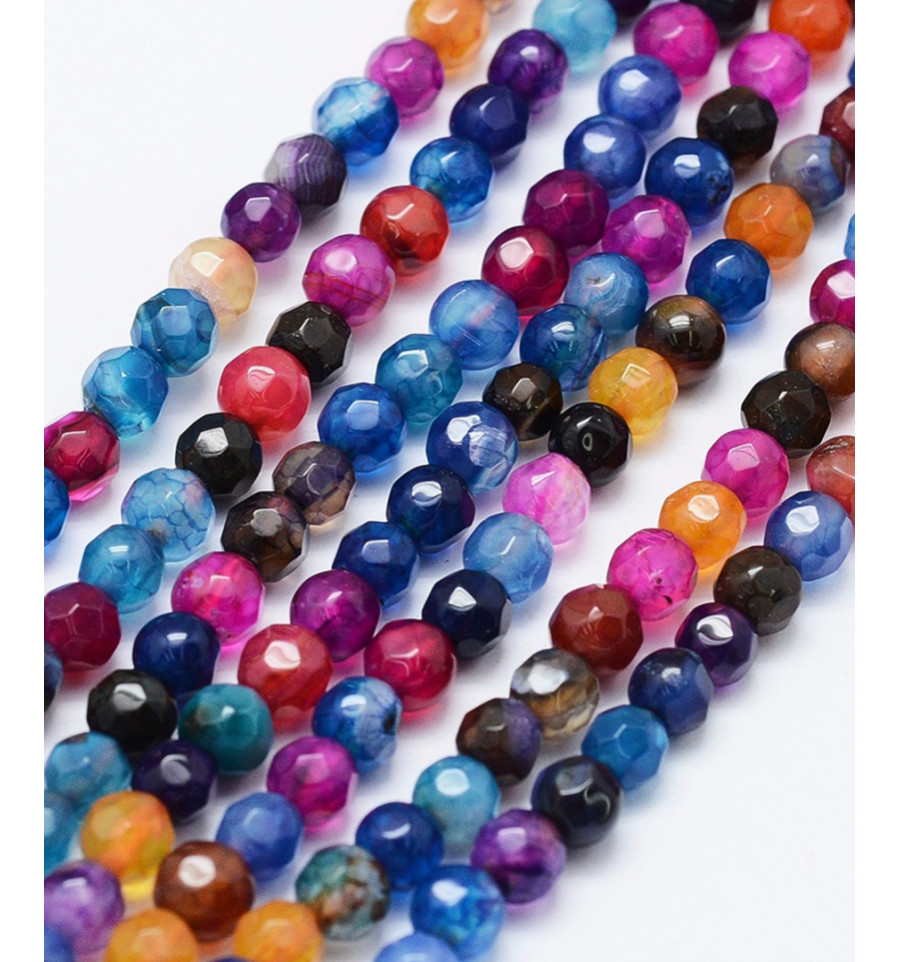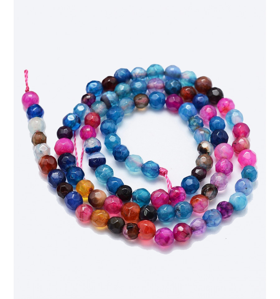 4mm - agate teintée multicolore - Chapelet pierre