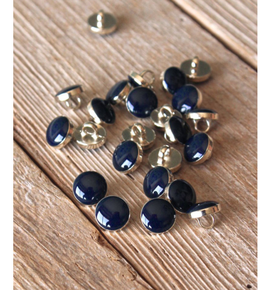 Chic et élégant, le bouton à queue sera la touche finale raffinée de vos vêtements cousus mains. Il est disponible en 3 tailles afin de s'adapter à vos différentes cousettes. Ce bouton possède une base métallique dorée que l'on a associée avec de l'email à chaud.