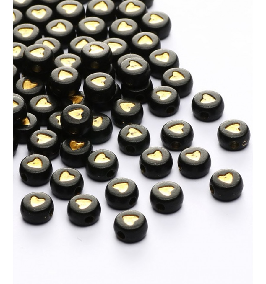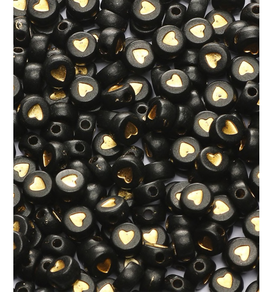 Perle alphabet coeur doré / fond noir