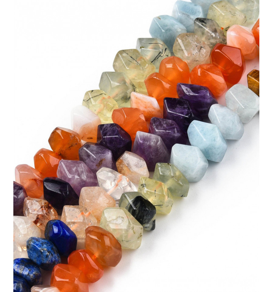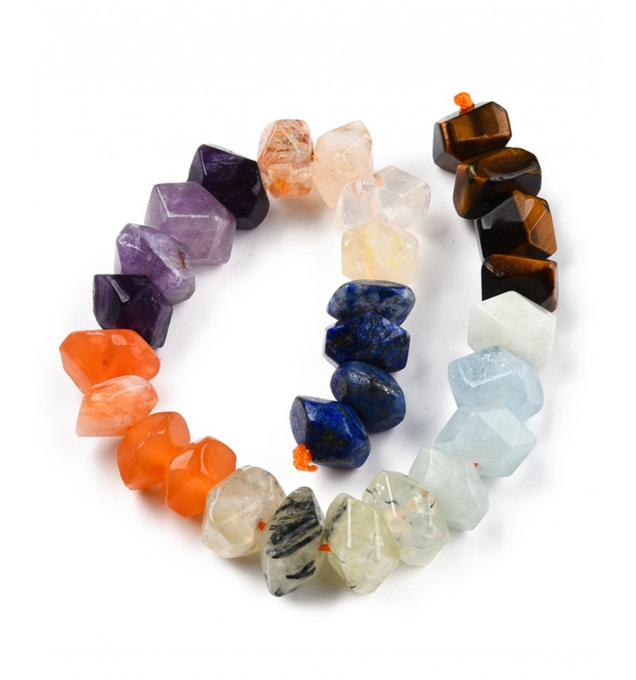 nom des pierres : oeil de tigre naturel, aigue-marine, prehnite, agate du botswana, améthyste, citrine et lapis lazuli.