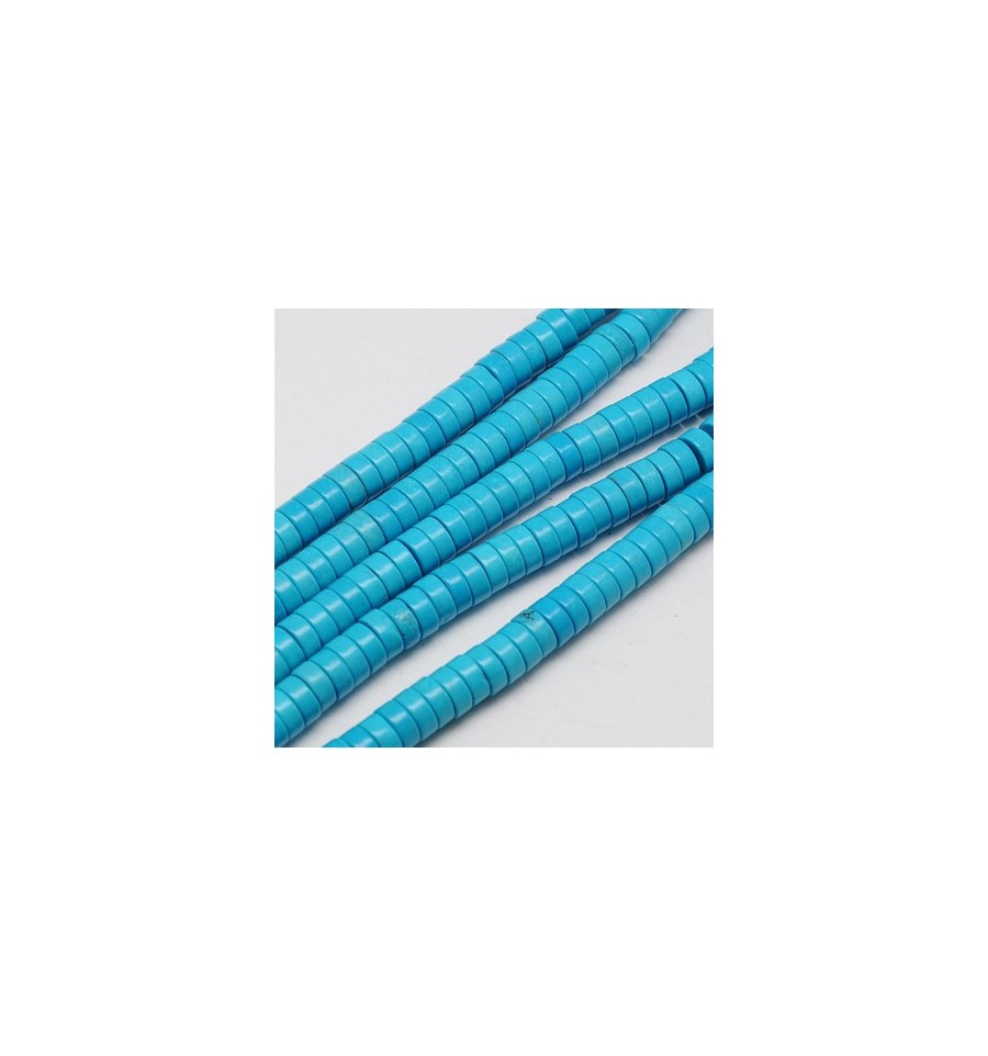6mm - Chapelet perles rondelles Heishi en Howlite - bleu