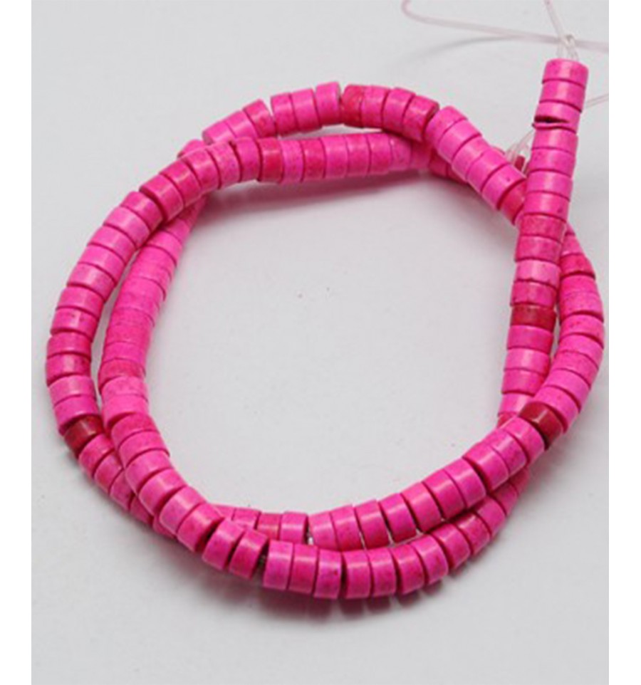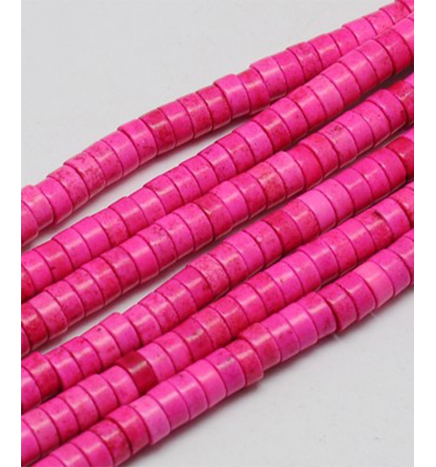 6mm - Chapelet perles rondelles Heishi en Howlite - fuchsia