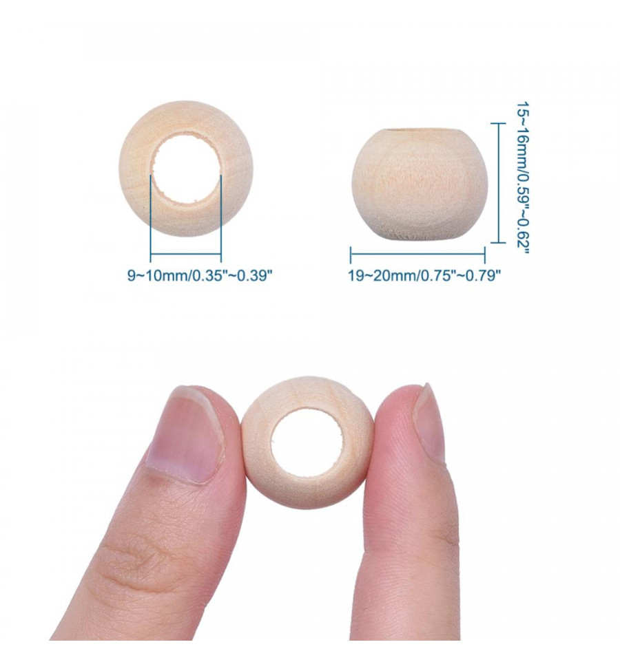 20mm - Perles en bois à gros trou