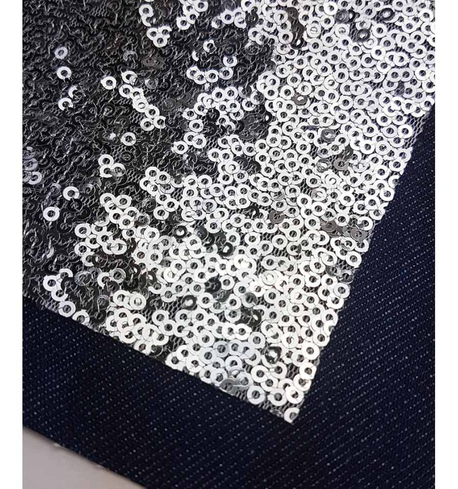 Coloris: jeans foncé + paillettes argentées