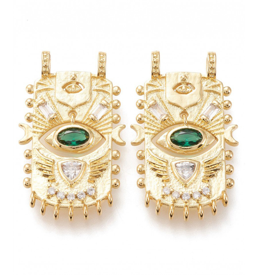 Pendentif plaquette avec oeil zircon vert suspendu