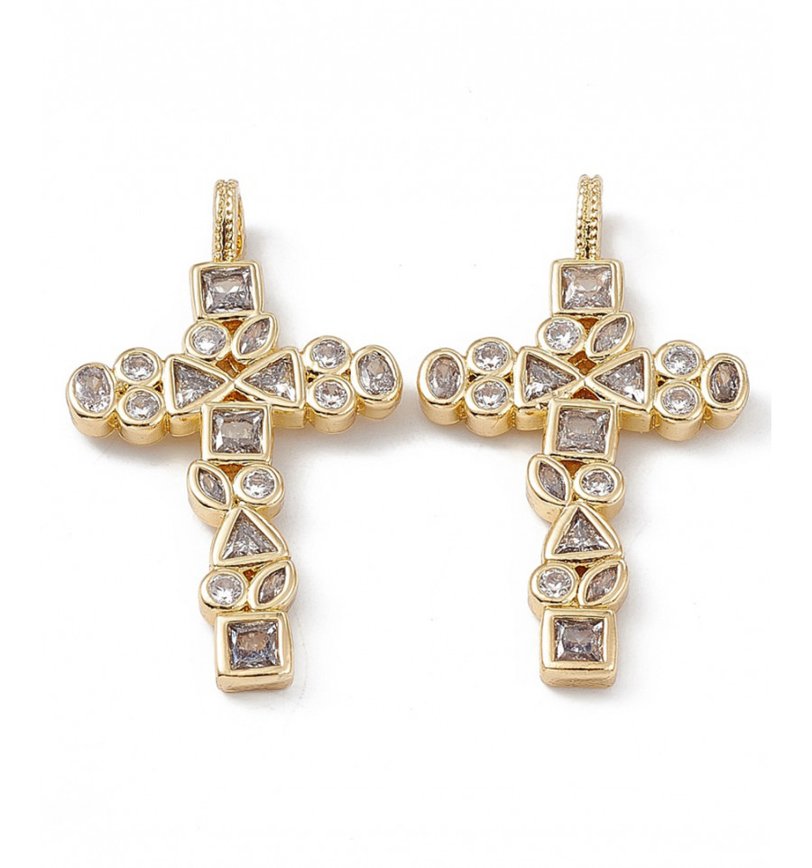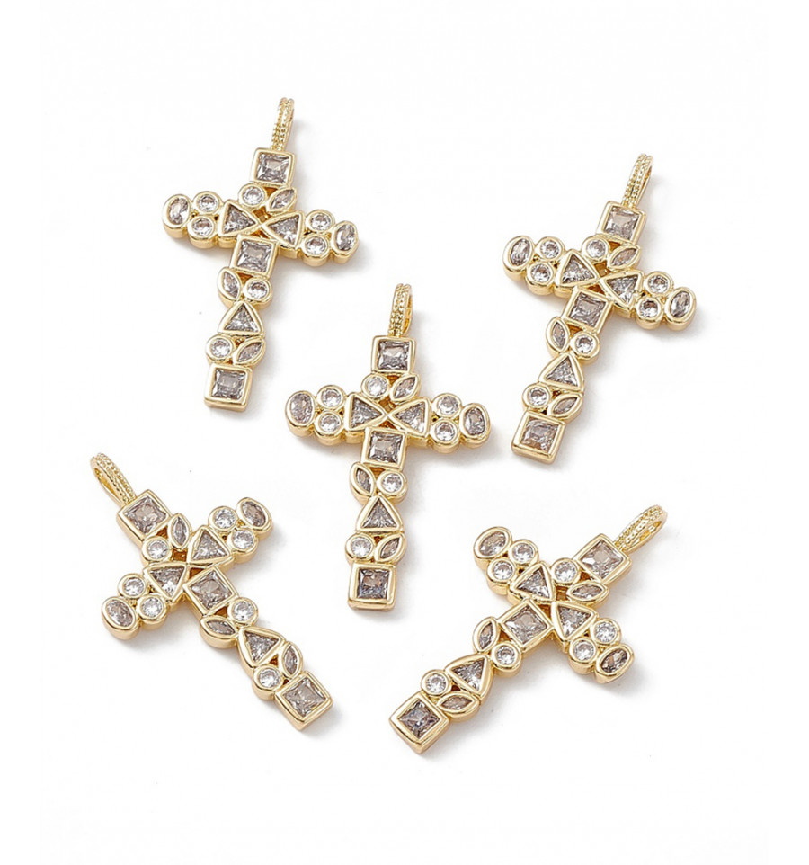 Matériaux: laiton doré à l'or fin 18k + oxyde de zirconium blanc