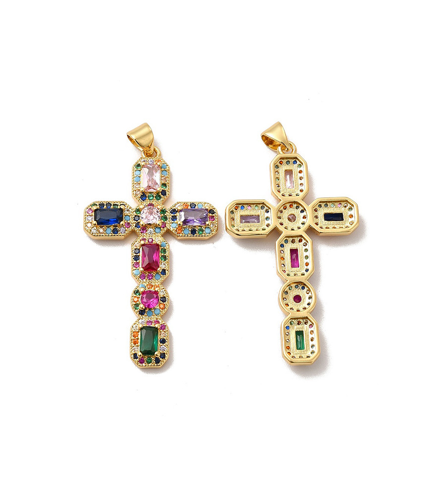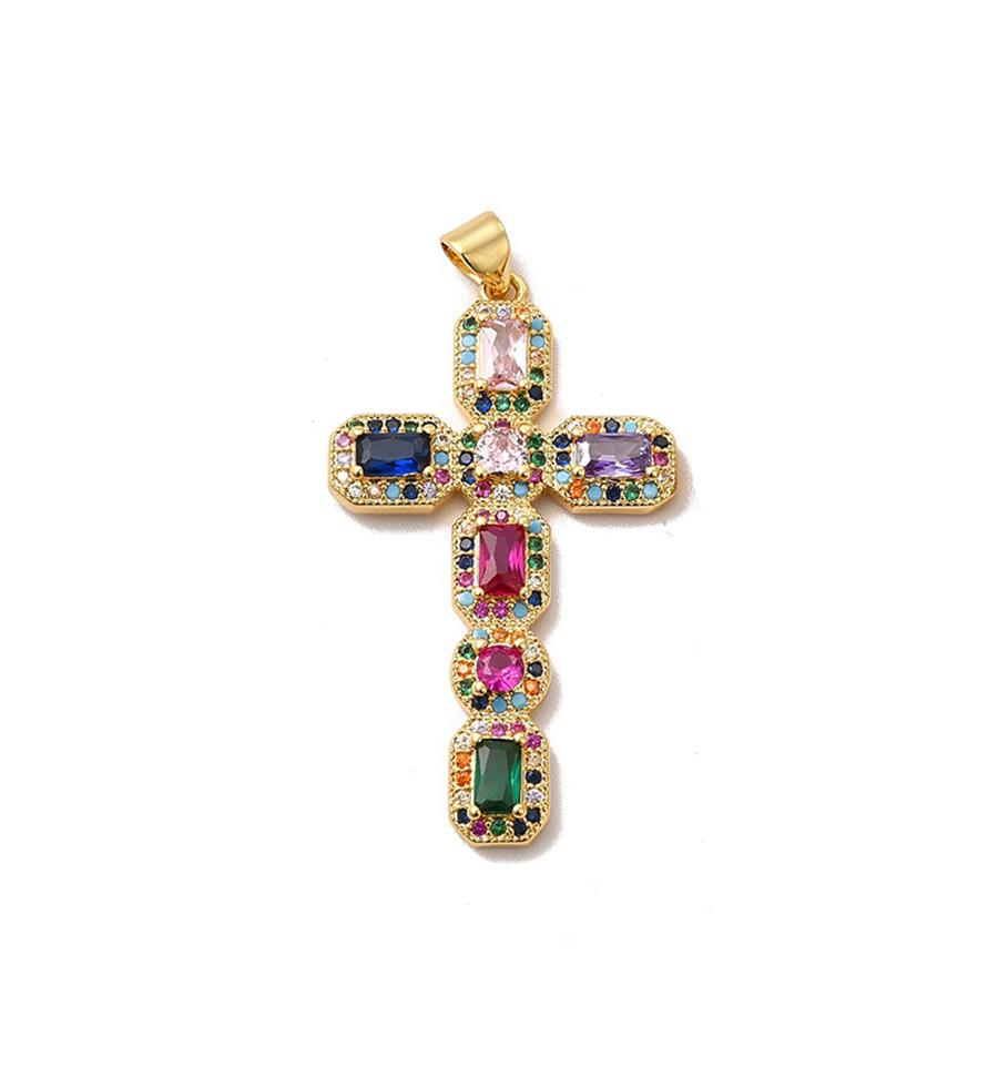 Grand pendentif croix + zircons multicolores