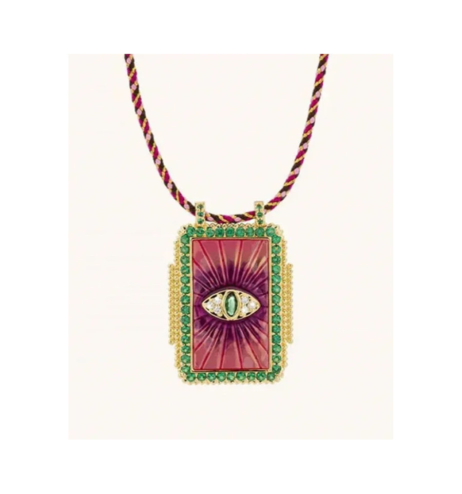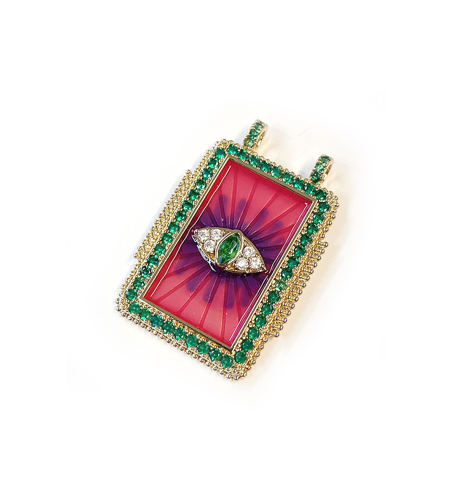 Pendentif plaque oeil fuschia