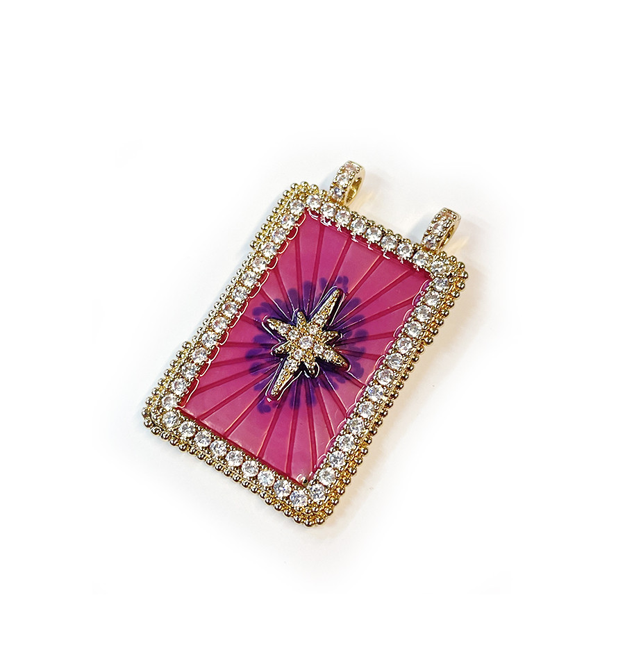 Pendentif plaque croix fuschia