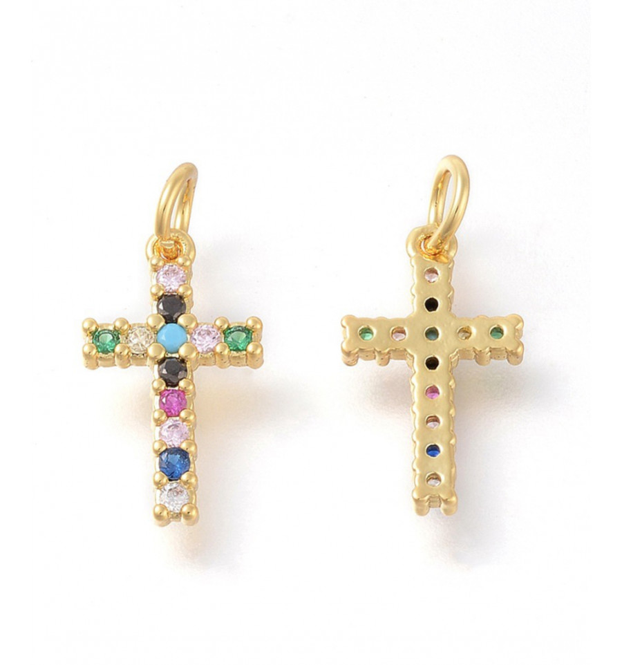 Pendentif croix + zircon multicolore