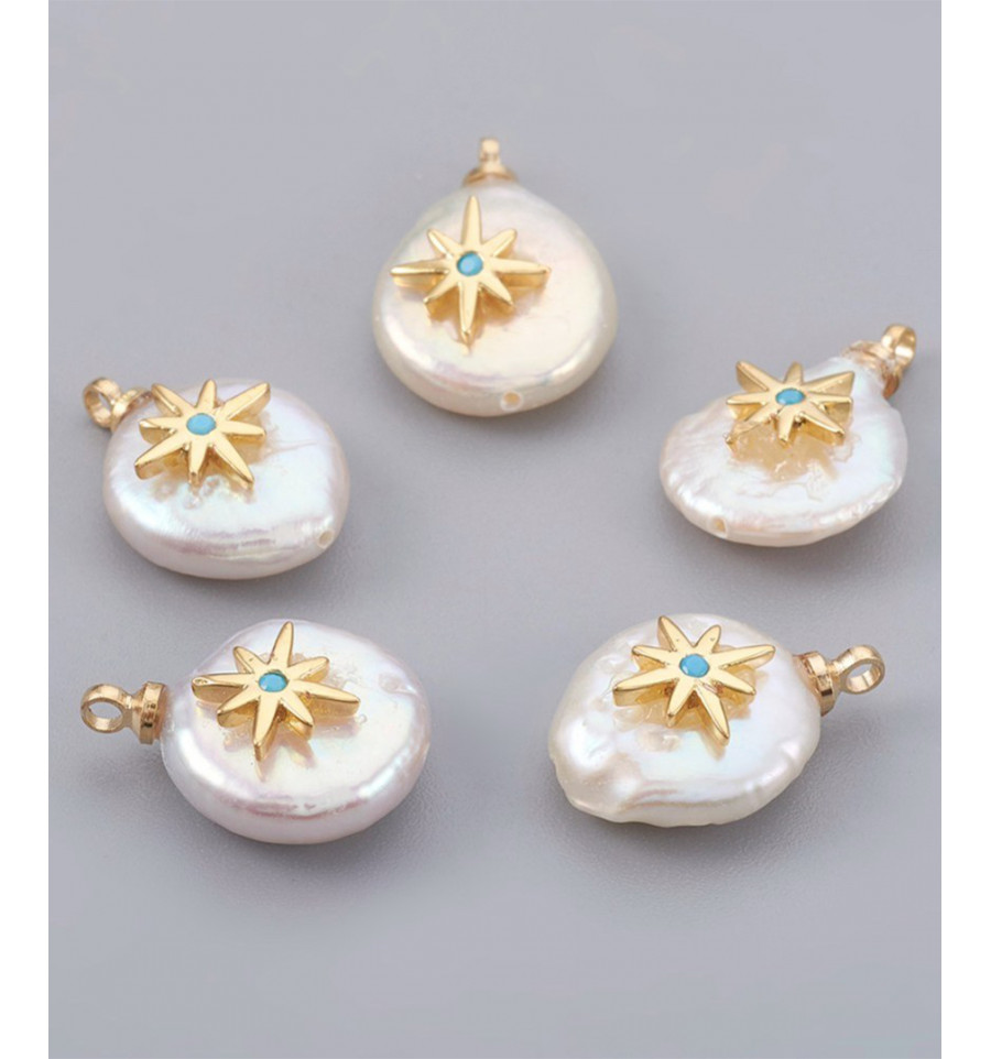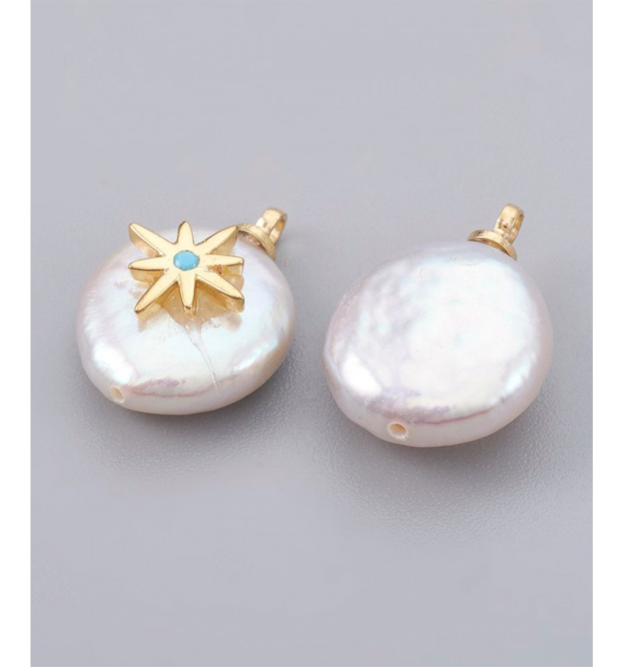 Pendentif perle de culture avec étoile plaquée or