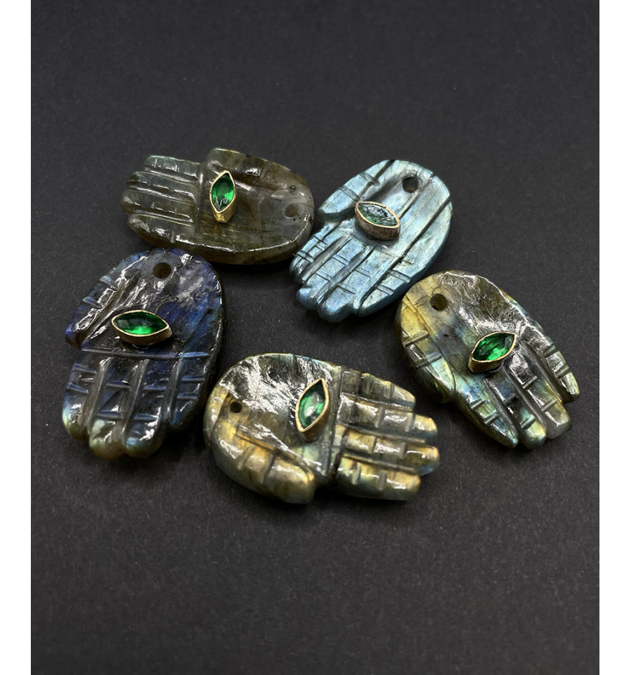 Nos pendentifs mains sont taillées et sertis à la main dans nos ateliers en Inde.