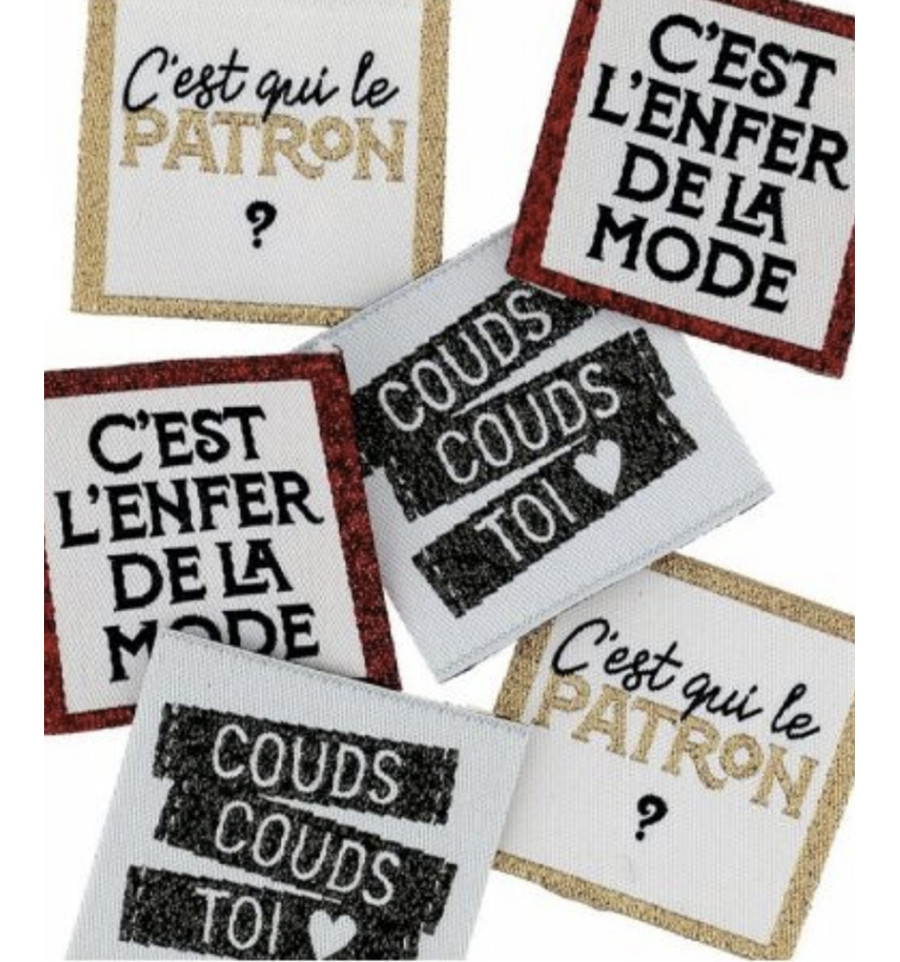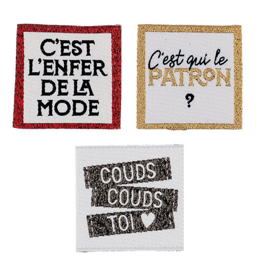 Étiquettes tissées à coudre sur les vêtements. Elles ne s’effilochent pas et apporteront une touche finale pour terminer les créations ou personnaliser un vêtement. Elles peuvent également cacher un accroc ou une tache!