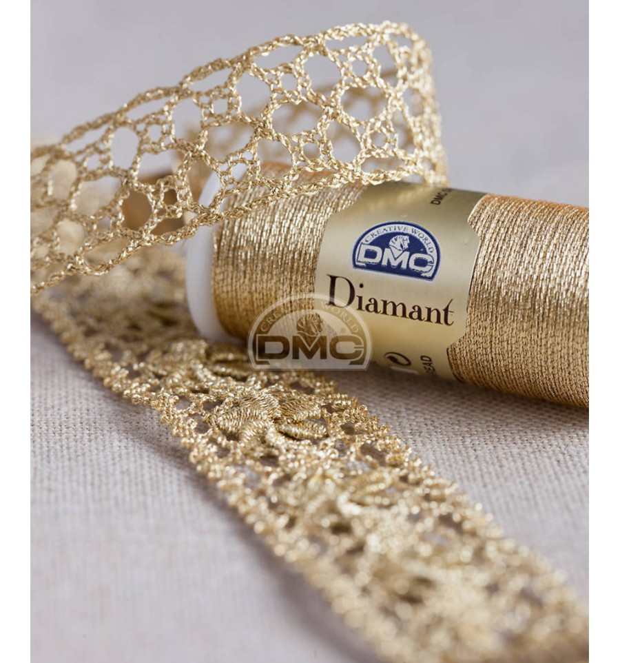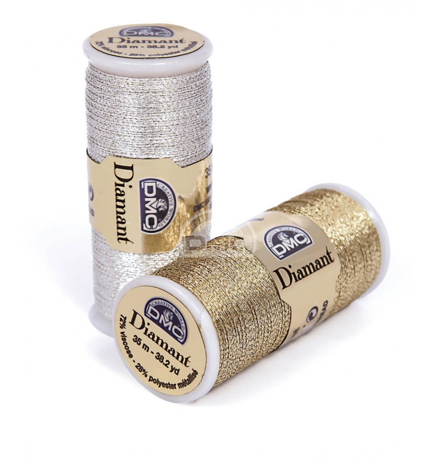 Le fil Diamant est constitué de fibres de viscose enveloppées dans du polyester métallisé.