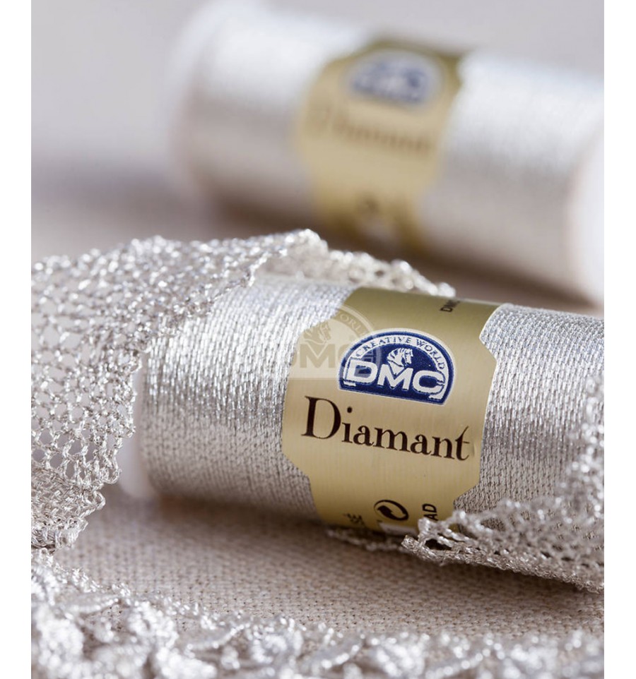 Le fil Diamant est constitué de fibres de viscose enveloppées dans du polyester métallisé.
