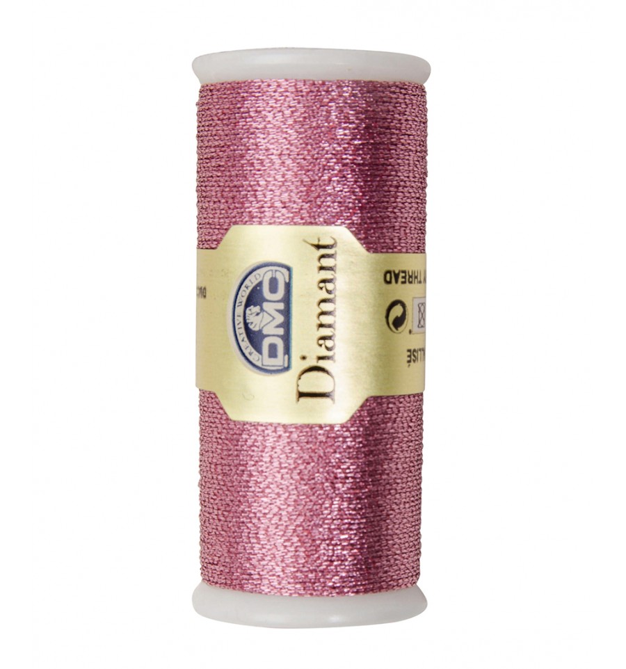 Le fil Diamant est constitué de fibres de viscose enveloppées dans du polyester métallisé.