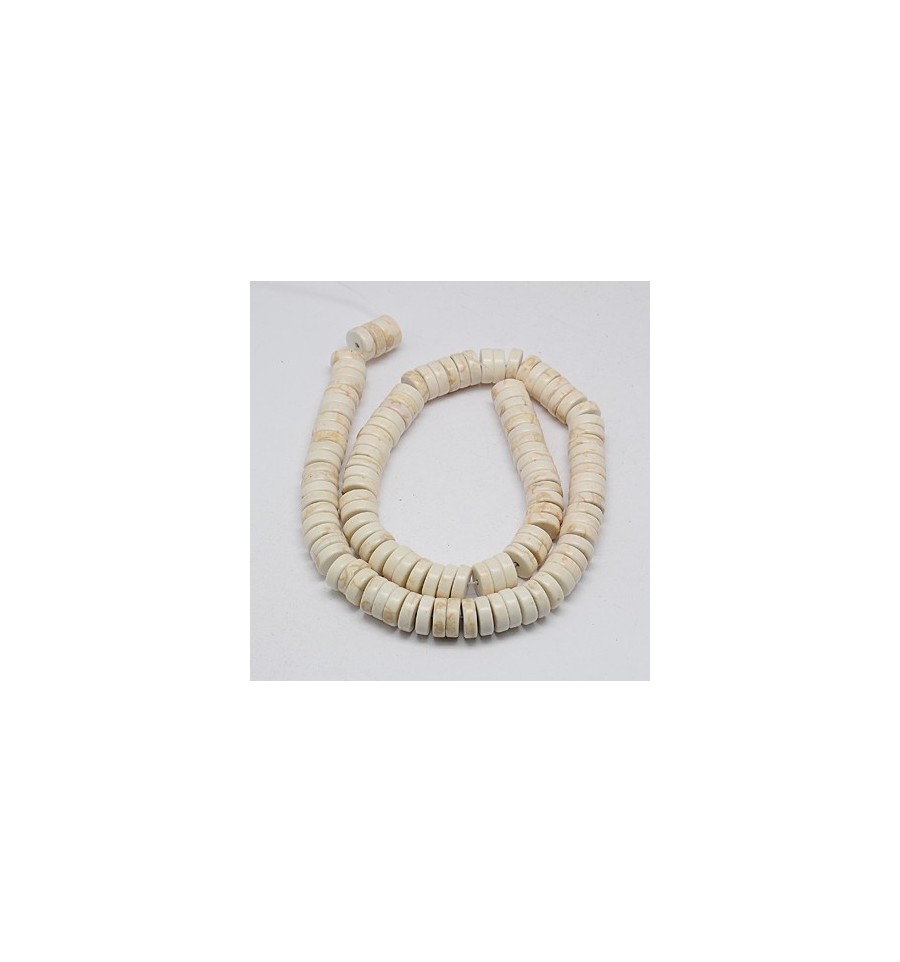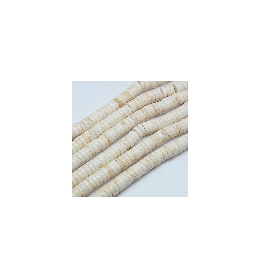 6mm - Chapelet perles rondelles Heishi en Howlite - écru