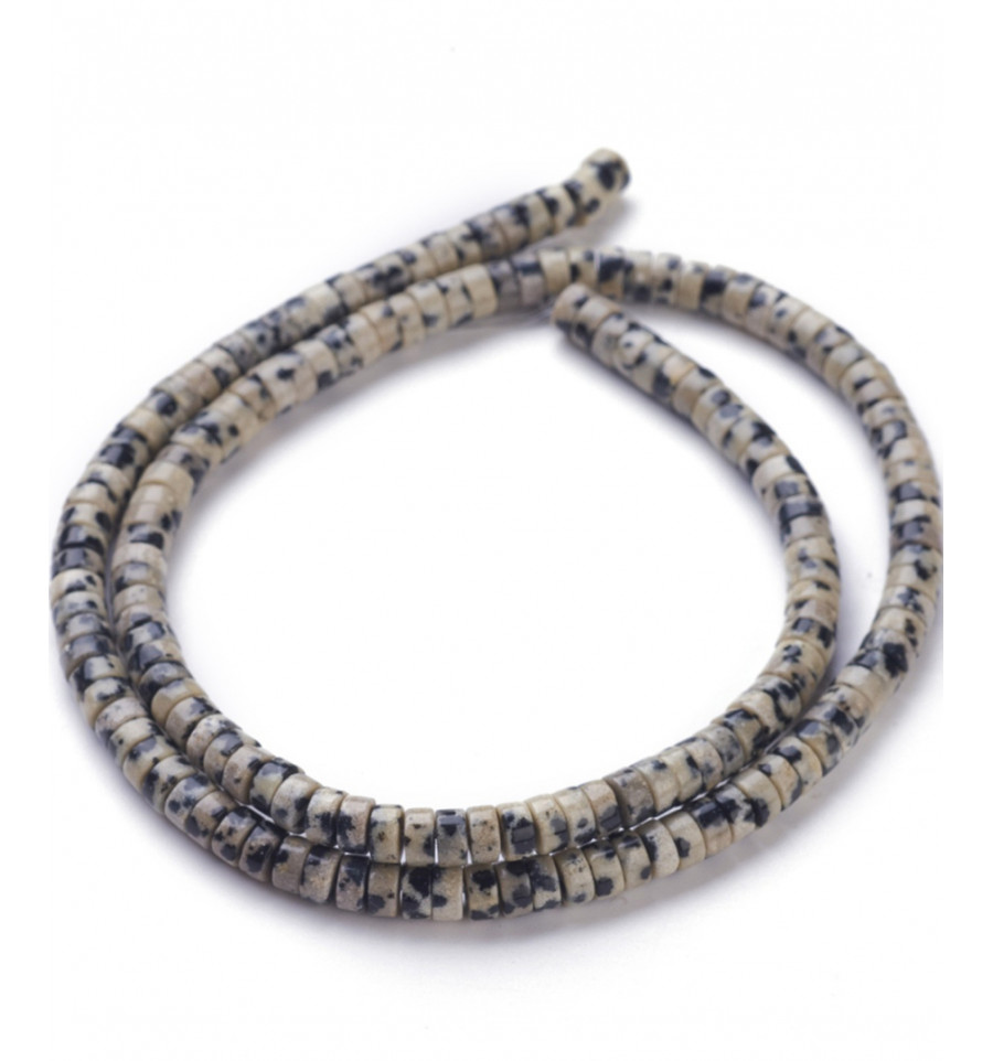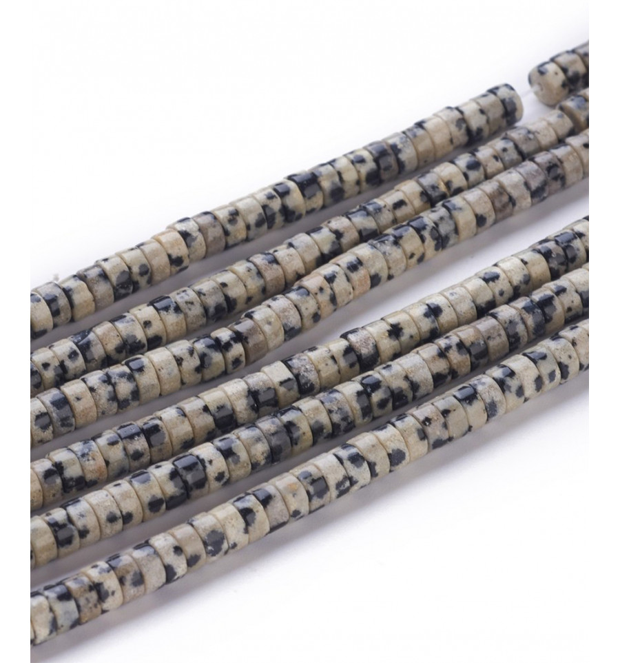 4,5mm - Chapelet Heishi en pierre jaspe dalmatien naturelle