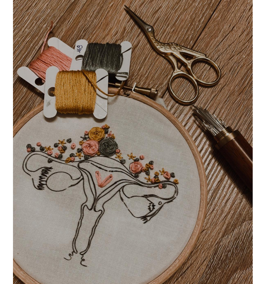 Ce kit est fait pour réaliser une broderie “cuterus” contraction du mot “cute” (mignon en anglais) et uterus. Ce kit est mon moyen d’afficher en douceur mon attachement à la féminité, au féminisme et à ce combat que je mène au quotidien en faveur du droit des femmes.