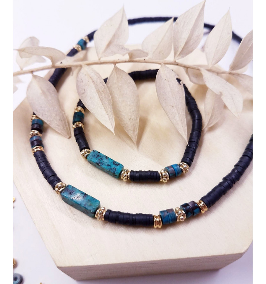 Le collier fini fait 40cm de long + 3cm de chaîne de rallonge