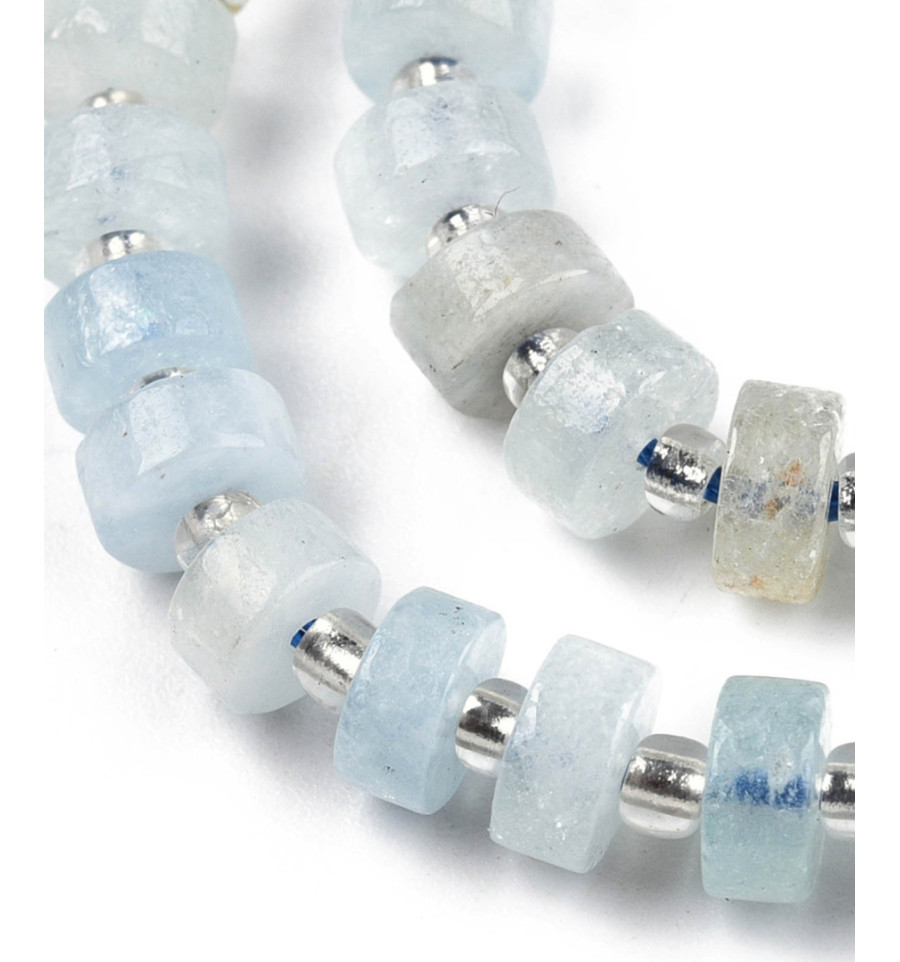Les perles heishi en pierre seront les stars de cet été. Mélangées avec des intercalaires dorées, vous pourrez créer des bijoux au style bohème.