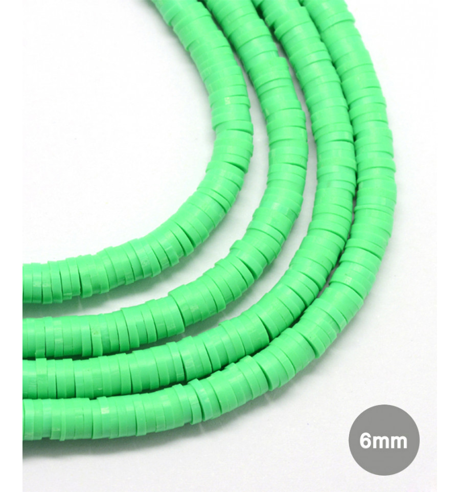 6mm - Chapelet perles rondelles Heishi - vert fluo