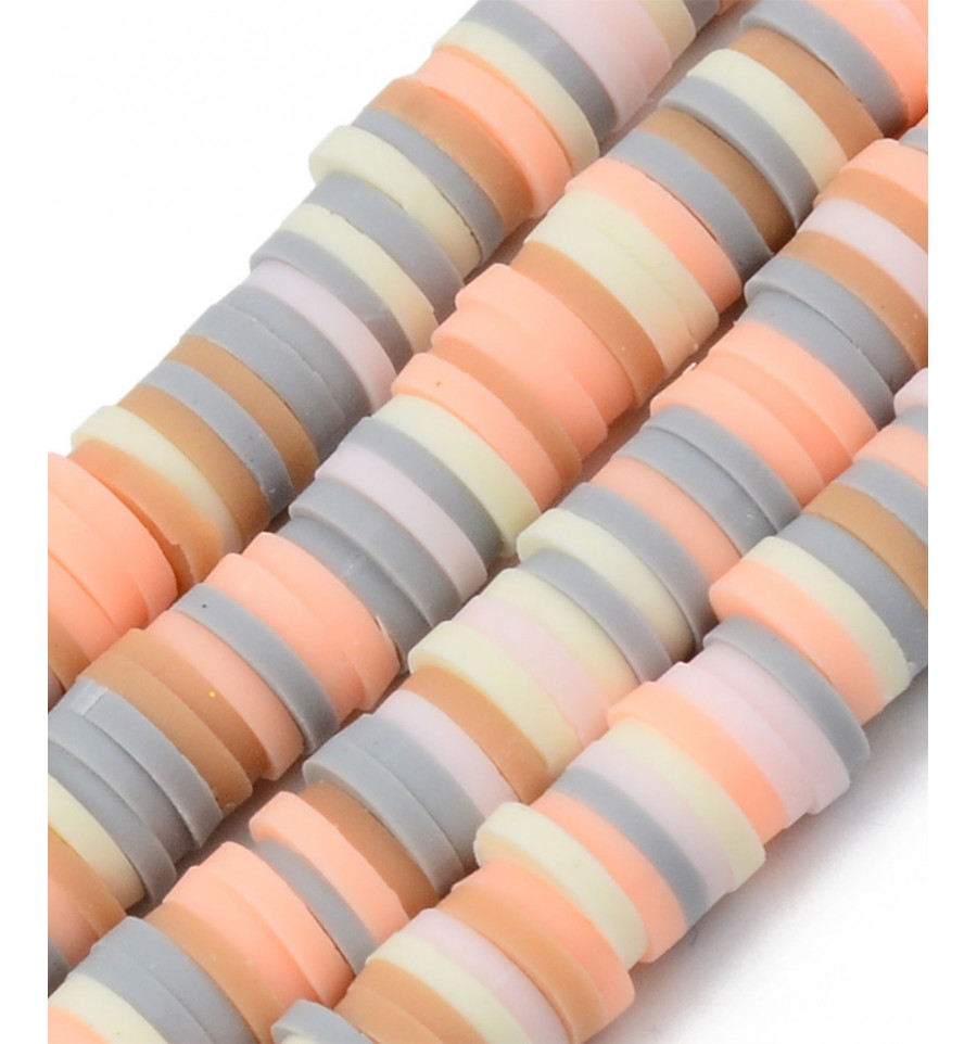6mm - Chapelet perles rondelles Heishi - multicolore pastel orange et gris