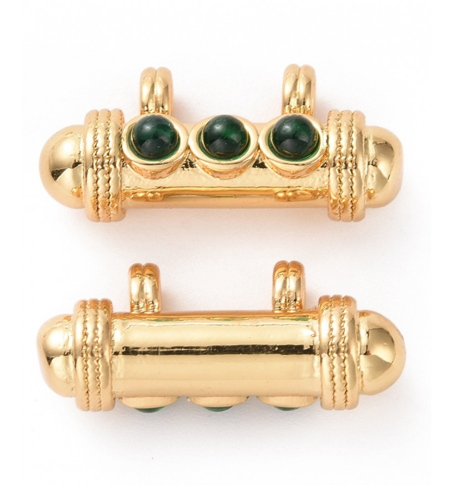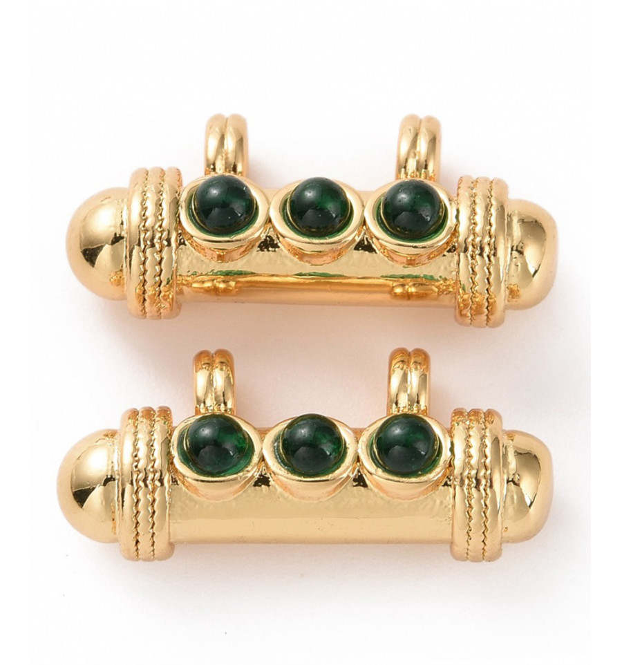 Matériaux: laiton doré à l'or fin 18k émaillé + cabochon en howlite teintée.