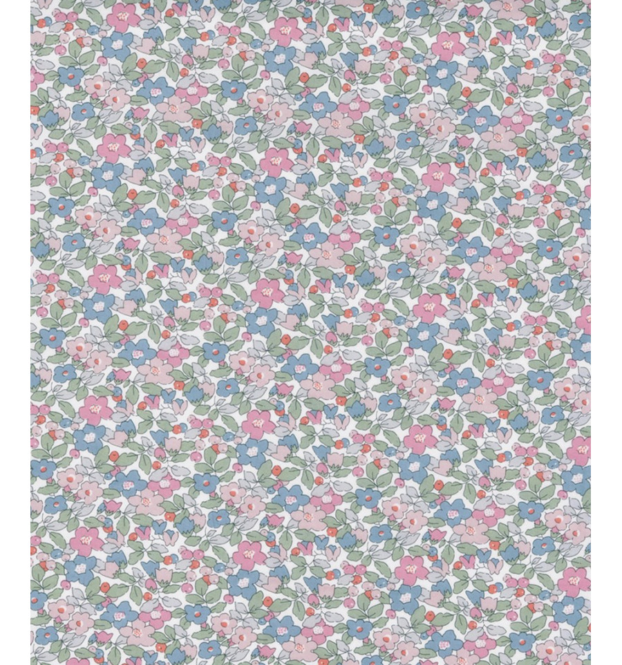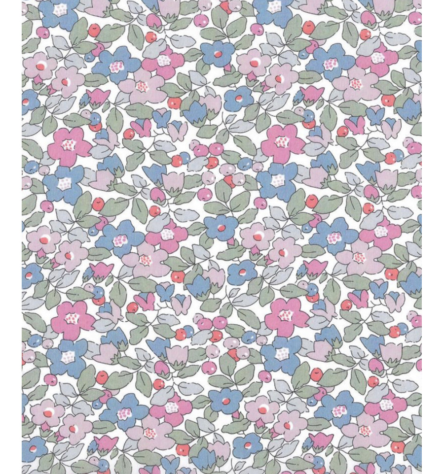 Tissu Liberty "Betsy Berry ", fleurs rose poudré et bleu gris sur fond écru.