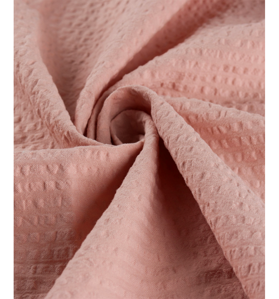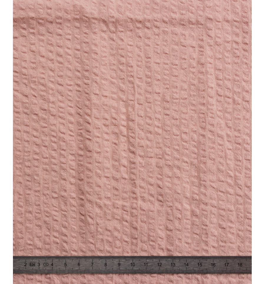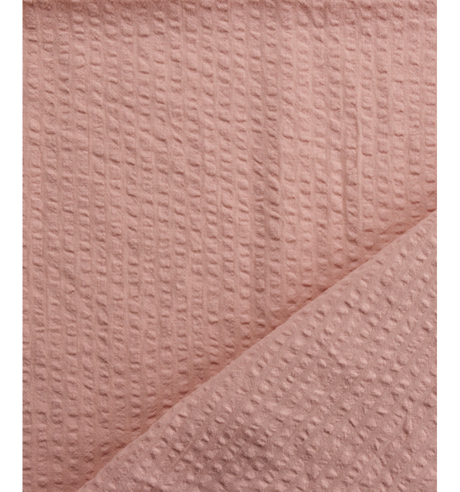 Le tissu seersucker est fabriqué en utilisant un processus spécial de tissage où certaines bandes de fils sont serrées, tandis que d'autres sont relâchées, créant une texture rayée et froissée. Cette texture est ce qui donne au tissu sa caractéristique ondulée, ainsi que sa légèreté et sa respirabilité.