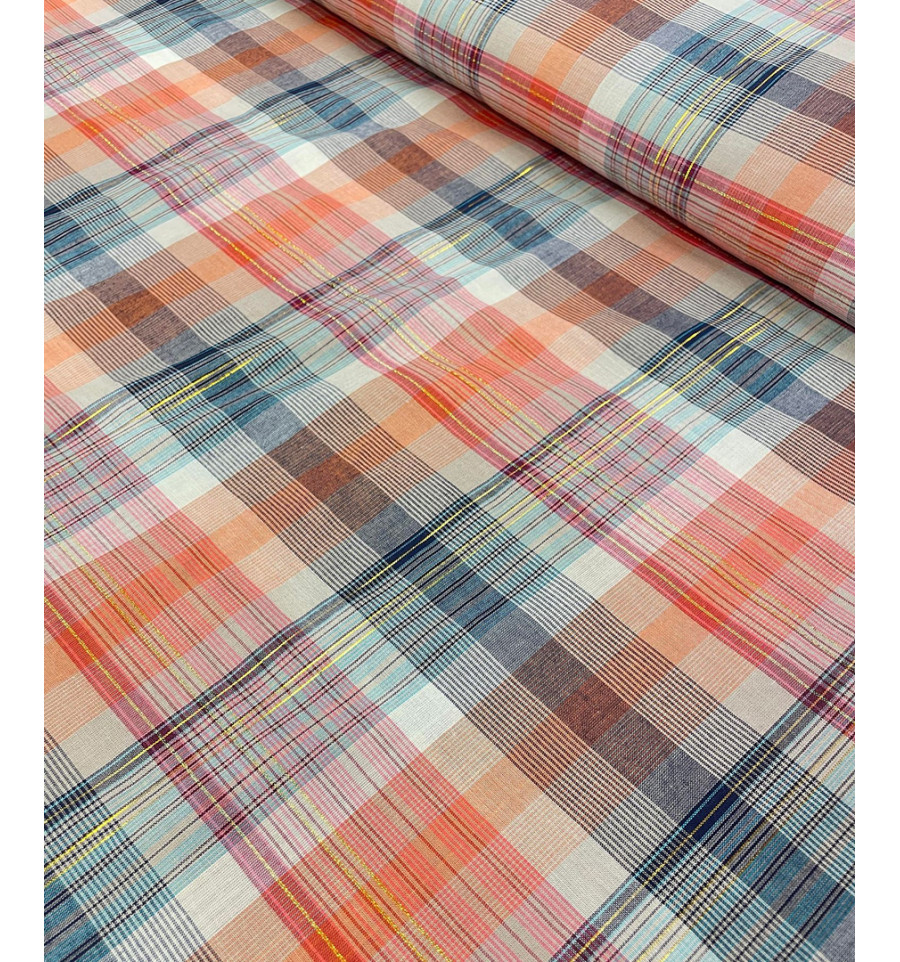 Voile de coton tissé lurex à carreaux
